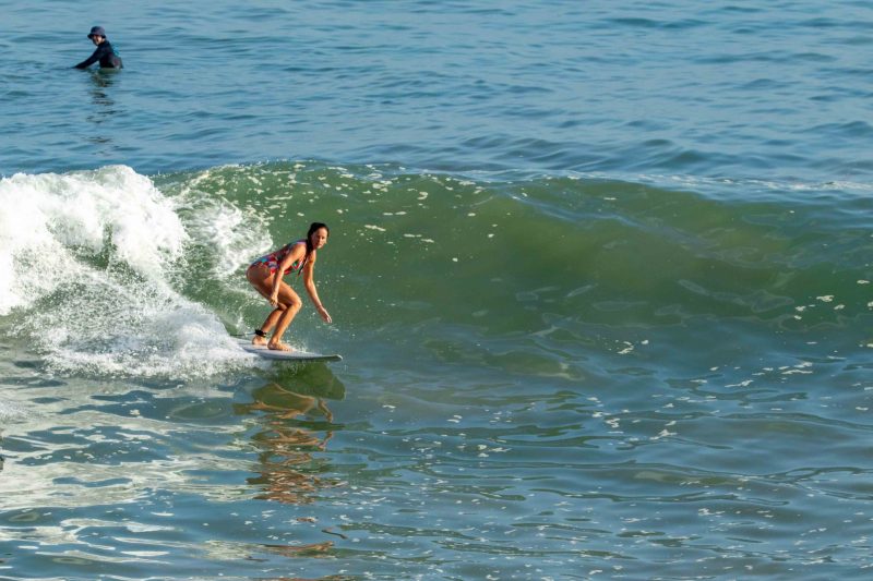 With a lively Indian Ocean and a low tide, our intermediate surfers set off for the tucked away left at Honeymoon. This wave is an excellent option when the swell grows to plus-sized. After winding their way through the forest to the surf break, the surfers found long-running left waves breaking off the cliff. The waves were in the head-high range, with occasional larger sets for the patient surfers sitting furthest outside. The wind blew very lightly offshore, and the faces of the waves were smooth and clean. The surfers worked on improving the speed of their pop-ups, which is required to make the sometimes tricky take-off.