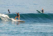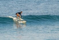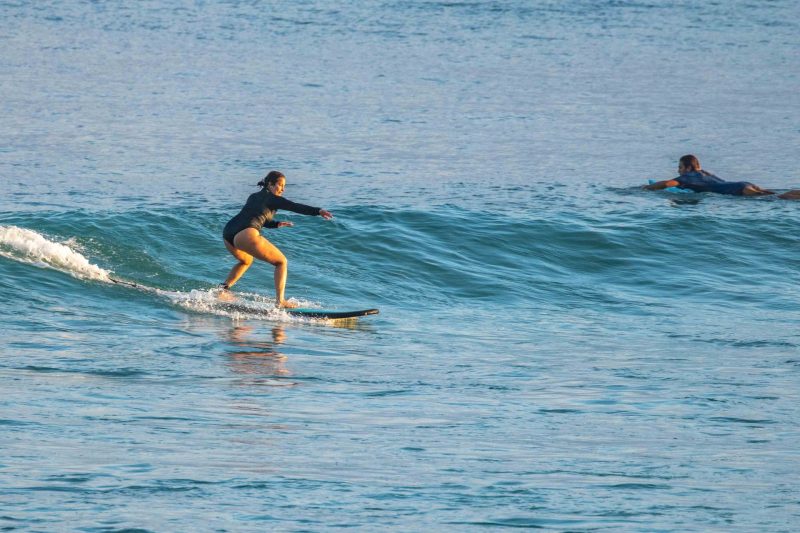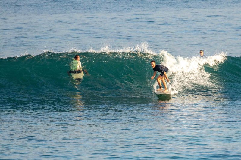 Excellent beginner surfing conditions at Padang Padang this morning! Mornings like these are why Padang Padang is the perfect wave for surfers just learning to catch waves on their own and ride down the line. The slow pace and the consistency of the wave provides the perfect platform for you to level up your surfing! This morning, our beginners enjoyed should-high left and right breaking waves which ran beautifully down the friendly reef. The wind was blowing lightly from an offshore direction, which allowed the waves to form a wall just a little bit longer before breaking. The surfers worked on riding down the line in the functional stance and improving their positioning.
