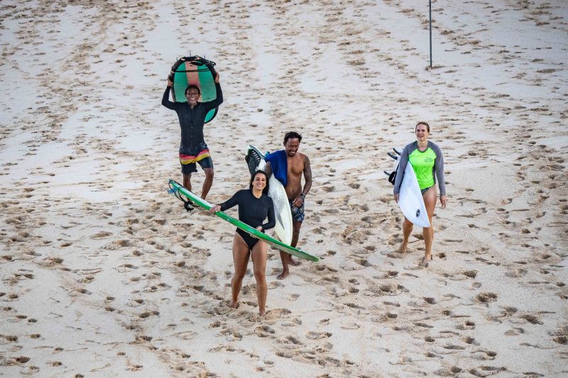 Pumping surf this morning at Dreamland! Our intermediate surfers enjoyed excellent surfing conditions! Plus-sized walls, long lines, and offshore wind! This is the perfect wave and the perfect size to step up your game in bigger conditions. The wave is not so challenging or intimidating when overhead. This affords an intermediate surfer the time and space to develop their bottom turns and improve their top turns. Additionally, the A-frame offers left and right-breaking waves, so a surfer can have their pick at what they would like to work on. Developing surfers can build upon the confidence they gain in mornings like these.