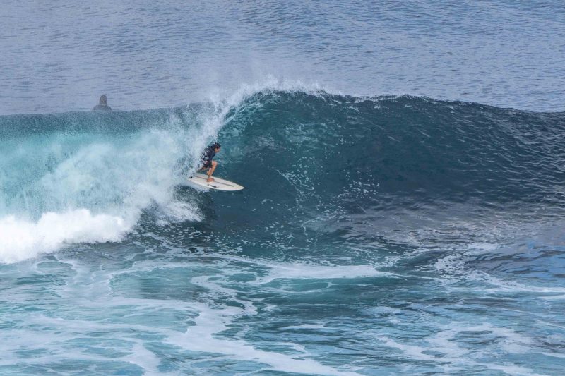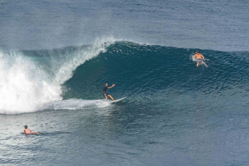 Fun surf this morning at Uluwatu! The surf has dropped to a manageable size compared to yesterday, perfect for all of the non-big wave surfers out there. There were a few well-overhead set waves but most of the waves remained in the overhead range. The shorter period of the swell caused the lines to be peakier than they usually are, which split the break into additional sections. The wind was dead calm at first light, picking up to light offshore as the session progressed. The surfers worked on building their confidence in the steeper takeoffs, something that is easier done under the careful guidance of an instructor. We are approaching the time of the year that is particularly good for the airport reefs- plenty of swells and no wind in the morning.