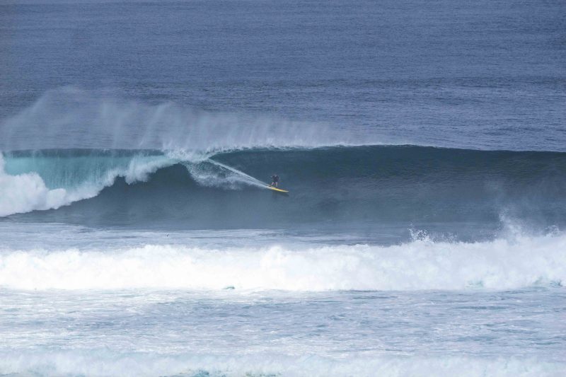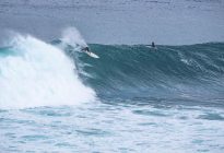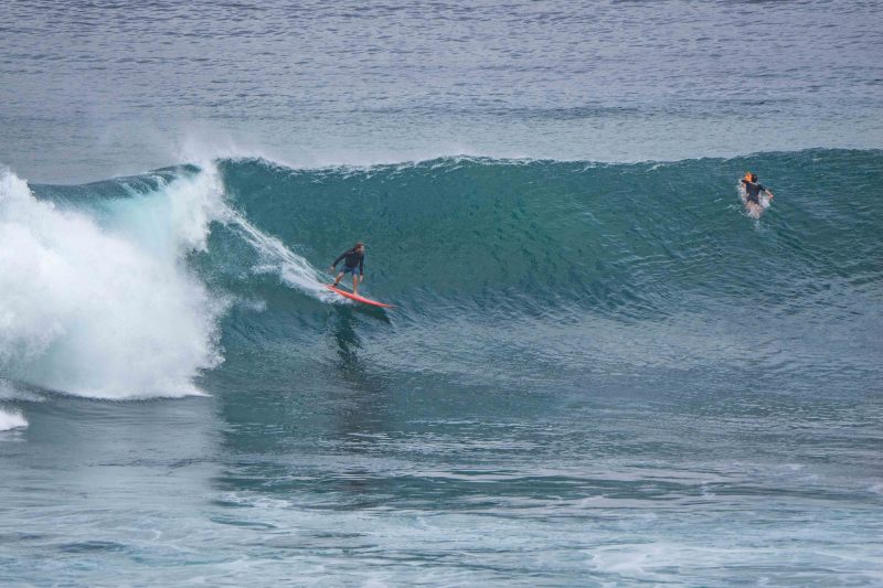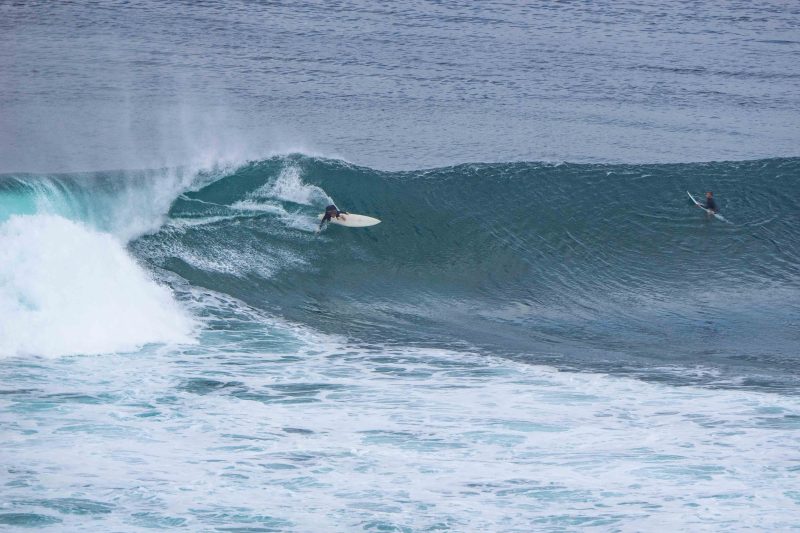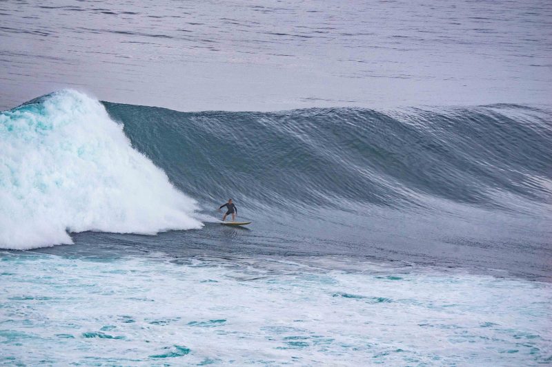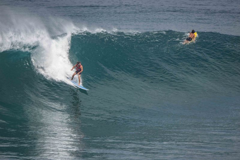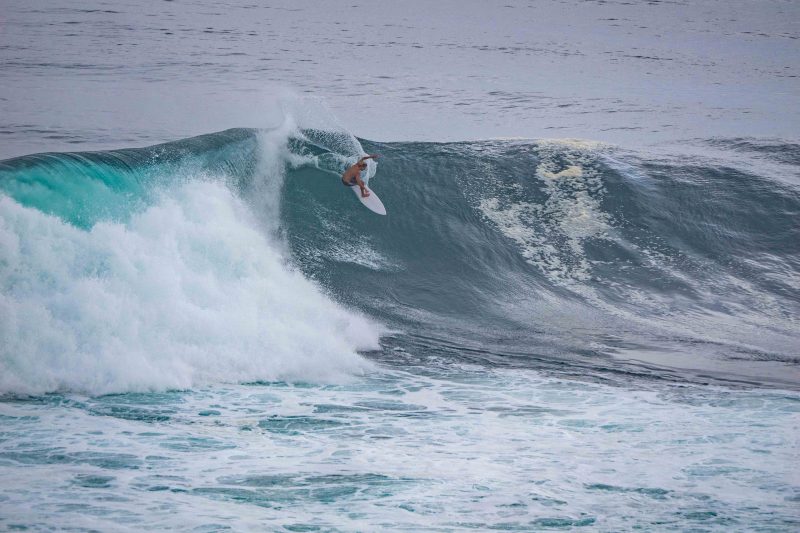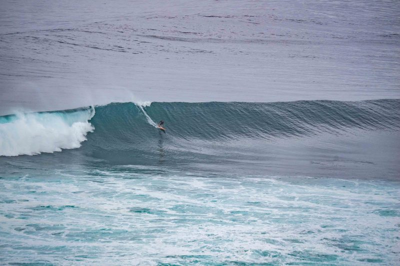 Some surfers tackled the Bombie, while others chose the long lines of Outside Corner. However, a few individuals truly distinguished themselves with remarkable top turns on massive waves, reminiscent of the legendary surfing icon, Andy Irons.
