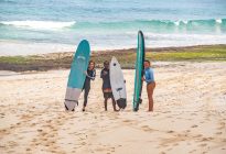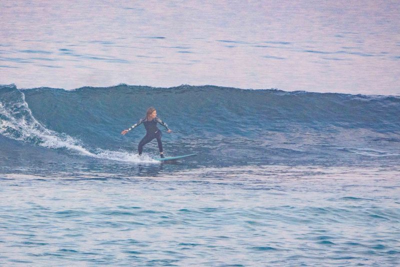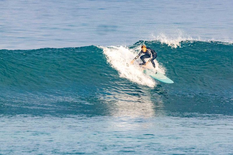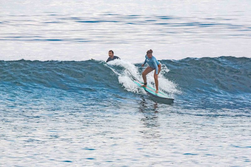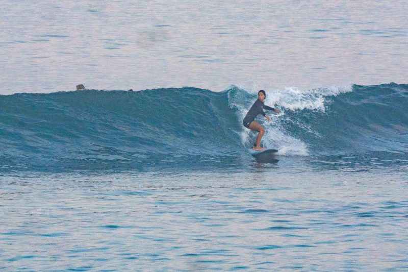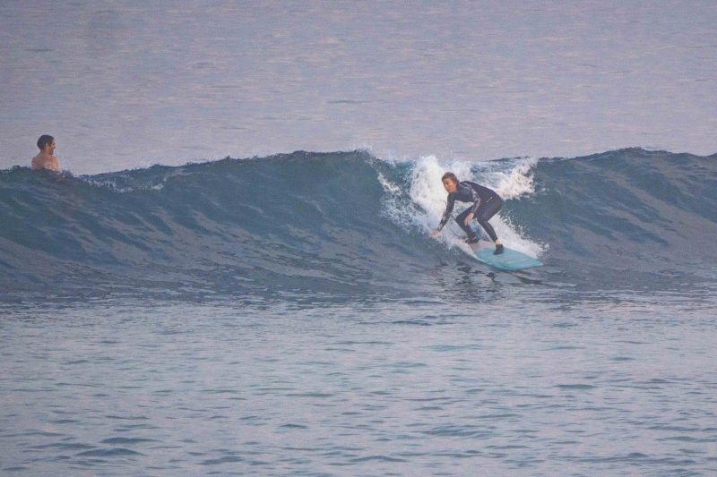 A fun day of waves today! Our intermediate surfers had a wonderful time surfing the sandy-bottomed peaks at Dreamland! The surfers rose bright and early and were one of the first ones to the lineup. Everyone enjoyed the mostly head-high, intermediate-friendly waves, and all made lasting progress. The wind was calm to light offshore, and the ocean was smooth. The morning fog burned off mid-session.