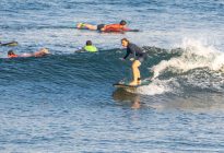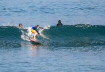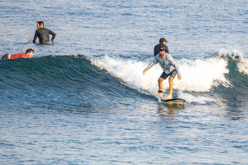 Our beginner surfers rose before the sunrise to catch excellent surf at the perfect beginner surfing wave – Baby Padang. The surf did not disappoint this morning as we enjoyed fun waves with a light offshore wind. The waves came in at about shoulder-high with a few larger sets, which is a great size for improving your skills. Both the lefts and the rights were working great today! The rights offered clean rides with a reform section on some of the waves (making for extra long rides). While the lefts offered slower, tapered walls, which were ideal for learning to ride along the wave face with control of your board.