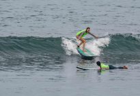 The protected cove at Padang Padang offered ideal beginner surf conditions for our group of budding surfers this morning. The wave is just tucked in enough to be protected from the southwest wind, and yet it still picks up the smaller swells. Our surfers enjoyed waist-high waves, moving along at the perfect pace for finding your balance on the waves. There was a little wind farther offshore; however, the conditions were clean, with a calm sea state and smooth wave faces. The surfers enjoyed the lighter crowd- a big benefit to coming to Bali during the quiet season.