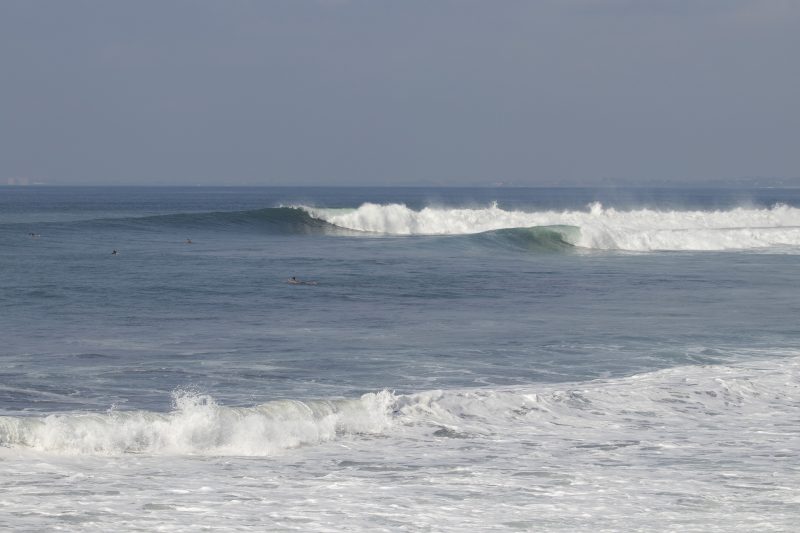 A trip up the coast this morning brought us to Klotok, an excellent right point break further up the highway than most surfers travel. The fresh swell was showing its power with the biggest sets reaching 1.5x + overhead. A slight onshore wind was building through the session however the surf was still very good. The waves broke in long lines down the headland at a quick pace, with a few turn sections mixed in. There were waves of various sizes coming in. You had to be careful not to be caught by the bigger set waves that would occasionally come through the lineup.