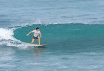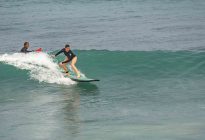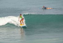 For beginner surfers, Dreamland is a step up in difficulty as there is no channel, and the waves break a little faster. These waves give the surfer the opportunity to ride left and right down the line a greater distance than at Padang Padang. When learning to ride the waves at Dreamland, a surfer will learn to engage their rail and get moving down the line.