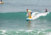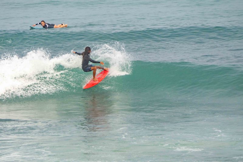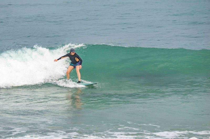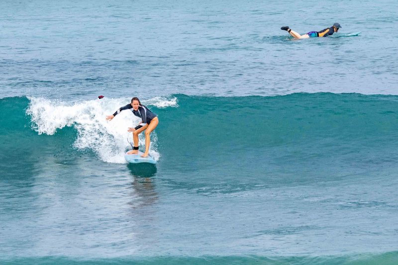 More fun beginner surfing at Dreamland this morning! The conditions were very clean and the waves were breaking at an easy pace- perfect for beginner surf lessons! The wind was blowing nicely light offshore against the shoulder-high waves. The surface of the ocean was very smooth, and the water was that dreamy turquoise colour that Dreamland is famous for. Overall, it was a great session!