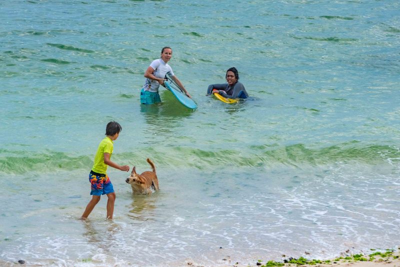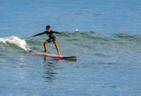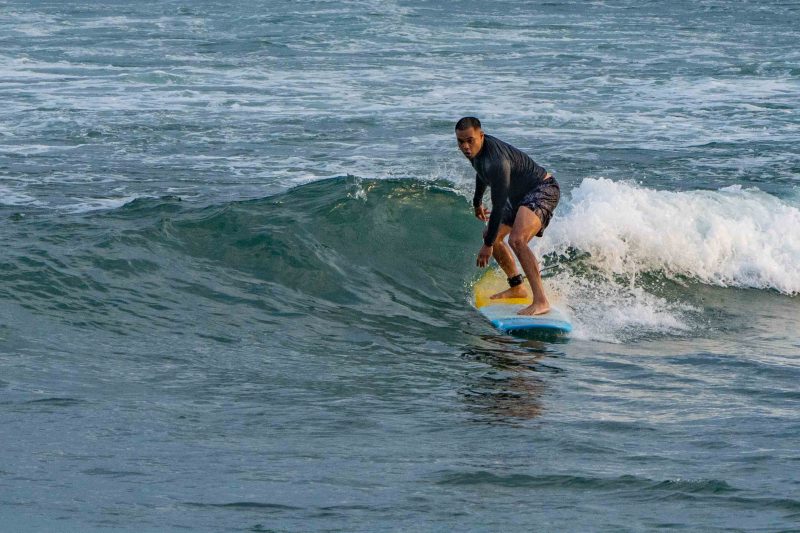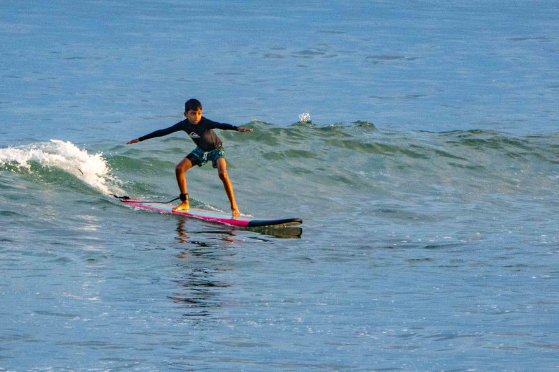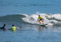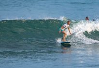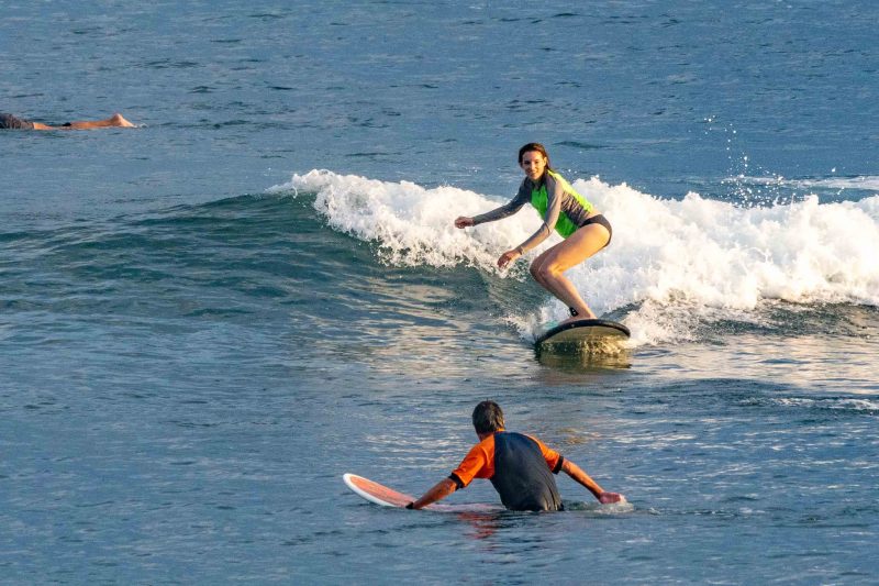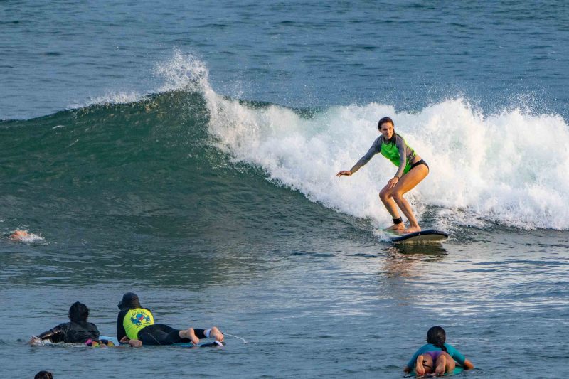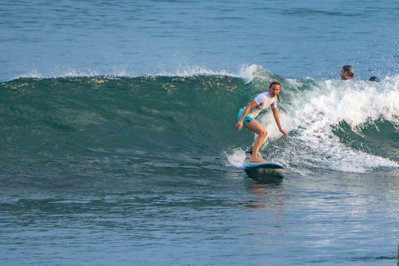 A new, powerful swell has arrived, lighting up the breaks on Bali’s coastlines. At Padang Padang, our beginner surfers enjoyed a very fun morning learning to surf at Bali’s best beginner wave! The waves were mostly about shoulder high, with a few larger set waves breaking farther outside. The wind was blowing lightly offshore, and the conditions were clean and fun. The rights were particularily good today, beaking at just the right pace for a surfer to learn to ride the waves with balance and control.