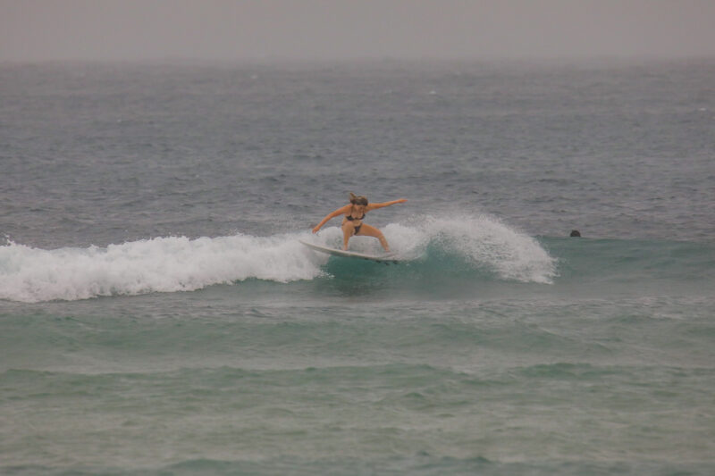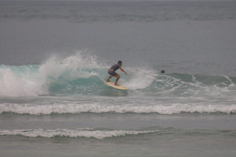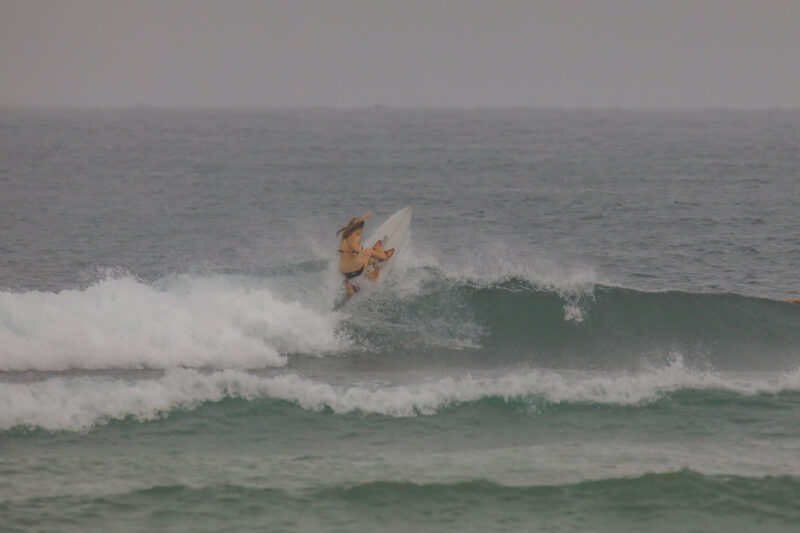That “somewhere” today was Nusa Dua. Over at Blackstone, the conditions were surprisingly clean despite the gray skies. Waves were consistently shoulder-high on the sets, offering beautifully shaped lefts and rights. While the rights were the crowd favorite, one standout woman was absolutely ripping, putting on a clinic for everyone in the lineup.