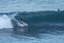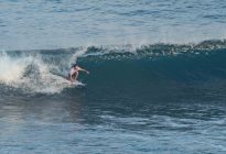 Pumping surf this morning for our advanced surfers! The surfers got what they came to Bali for this morning! Uluwatu served up 5-star waves with barrels and open sections for big carves. The surf has jumped in size considerably since yesterday, and wave heights are expected to continue to increase throughout the day. The Tradewind was blowing moderately at first light, but not so strong to make the surfing difficult. The waves were up to double-overhead on the largest of sets, with many head-high set waves in between. Our advanced surfers tested their barrel riding skills and gained some confidence after surfing powerful reef break waves.