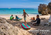 The scenery is spectacular and the white sand beach invites you to have a cold drink after the surf session. It’s also perfect to relax in one of the many warungs or enjoy the sun and crystal clear water. A surf spot for all levels, depending on wave size and tides. Great for beginners with small waves and high tides. Today it was perfect for the intermediate and advanced surfers.
