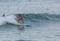 A new, powerful swell has arrived, lighting up the breaks on Bali’s coastlines. At Padang Padang, our beginner surfers enjoyed a very fun morning learning to surf at Bali’s best beginner wave! The waves were mostly about shoulder high, with a few larger set waves breaking farther outside. The wind was blowing lightly offshore, and the conditions were clean and fun. The rights were particularily good today, beaking at just the right pace for a surfer to learn to ride the waves with balance and control.