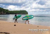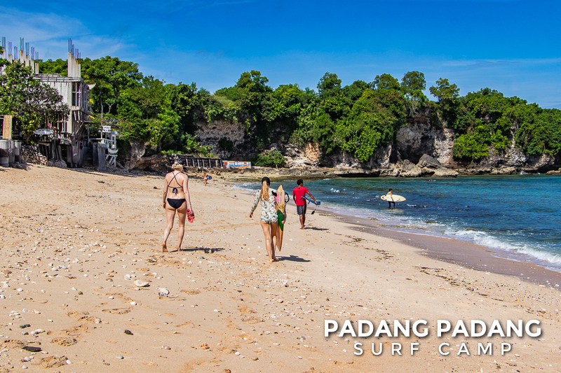 The scenery is spectacular and the white sand beach invites you to have a cold drink after the surf session. It’s also perfect to relax in one of the many warungs or enjoy the sun and crystal clear water. A surf spot for all levels, depending on wave size and tides. Great for beginners with small waves and high tides. Today it was perfect for the intermediate and advanced surfers.