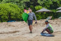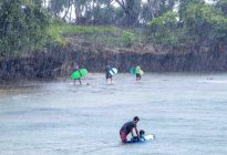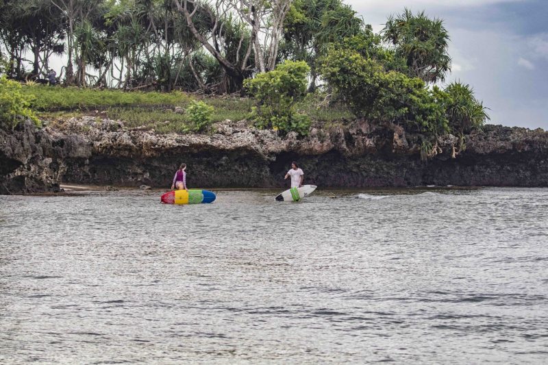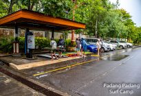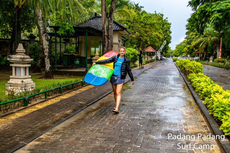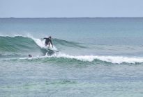 Our beginner group surfed at Blackstone again this morning as the west wind is still blowing and the swell is in the moderate range. The Uluwatu area is still seeing seasonal onshore wind and rain. The swell has dropped to 4 ft. and 12 seconds from 213 degrees, with a new, long-period swell expected to fill in throughout the day, which is forecast to peak tomorrow at 4.5 ft. at 16 seconds.