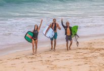 Our beginner surfers had a lovely time at Dreamland this morning! On a low tide and in-between swells, the surfers found plenty of fun lefts on a particularly beautiful morning. Our instructors knew precisely where to take the surfers to avoid the dangerous shore break that catches many surfers unaware. The surfers loved the light offshore conditions, smooth sea state, and the sand beneath the waves. The surfers worked on getting to their feet in the functional stance, so they can glide down the smooth wave faces with control.