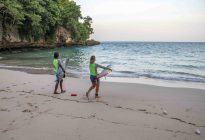 The strong wind and rain have finally disappeared, and we woke up to a clear, windless morning here in the Uluwatu area. Our beginner surfers took advantage of the clean conditions and surfed Baby Padang. The swell is coming in at 3.5 ft. at 12, which was enough for shoulder-high set waves. Our surfers worked on cleaning up their pop-up technique in the smaller, slower waves. Developing an efficient pop-up with your body in the correct position is an essential skill upon which to develop your surfing.