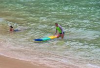 For beginner’s surf lessons, you do not need much swell. Ideally, you would have little to no wind in a calm, a protected environment, and a slow-breaking wave. Baby Padang the perfect location for a beginner’s surf lesson is that we have the channel that pulls the surfers back out into the lineup.