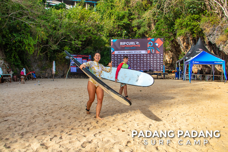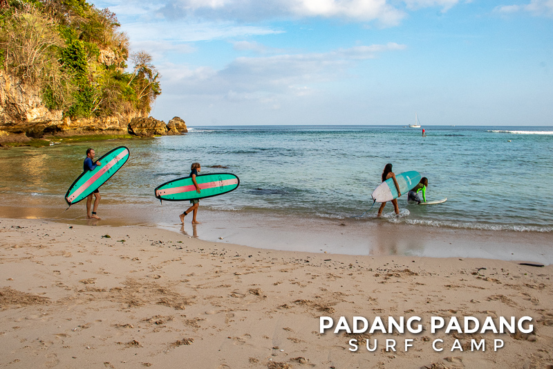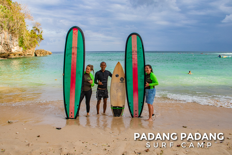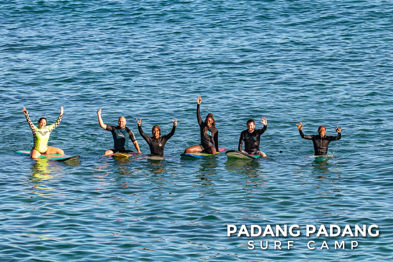 Padang Padang was great this morning for our beginner group. The shoulder-high waves were breaking perfectly and catching them was easy due to the gently breaking peaks. On waves like this, with the help of our surf instructors, progress can be made immediately.