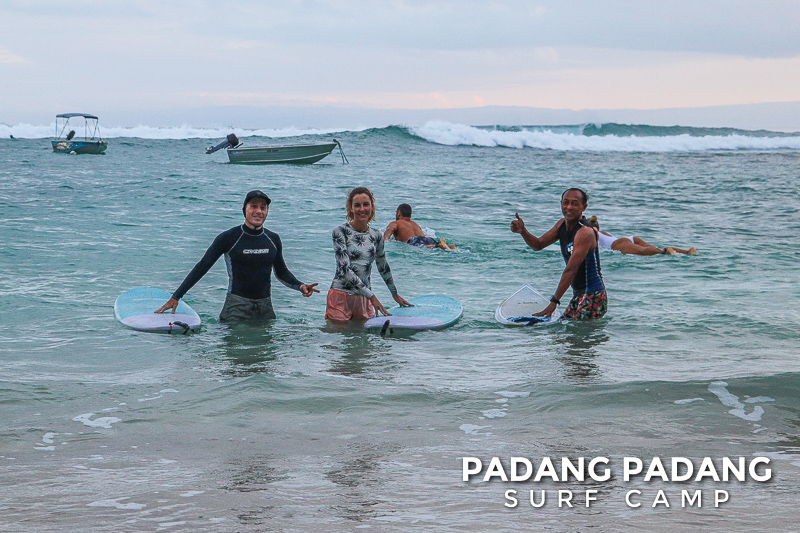 Today Baby Padang the weather is cloudy and it rained heavily at the beginning when we left, when we got there the rain started to subside. The condition of the waves is bigger than yesterday and clean. First day of surfing for the students and they made great progress with our instructors. Very nice waves and great fun. They are happy and tired, looking forward to joining us again to build more experiences.