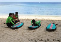 This morning our camera went to Baby Padang where surf lessons for our beginners took place. Swell is still here but a bit smaller than yesterday so Baby Padang is much more friendly today for surf lessons. Conditions are comfortable today in spite of cloudy sky and fresh offshore wind. Waves on the inside section of the spot are waist to chest high. Great session!