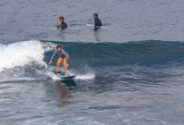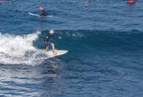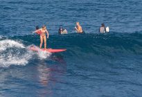 Small wave fun at Uluwatu this morning! The swell has dropped in size and consistency since yesterday, but there were plenty of enjoyable rides and beautiful conditions. Our intermediate surfers enjoyed the head-high set waves, complemented by clear water, a light offshore breeze, and a smooth ocean. The surfers used this experience to grow their confidence when surfing over reef breaks, aided by the expert guidance of Bali’s best surf instructors. A few surfers were able to connect long rides down the reef.