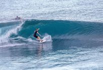 At Uluwatu, the surfers wasted no time, paddling out at first light to beat the rapidly rising tide. They were greeted with flawless sheet glass conditions and elongated lines across the multiple peaks that make up Uluwatu. A gentle offshore breeze from the east added to the perfection, maintaining impeccable conditions. Although the swell continued to decrease in size for another day, the surfers enjoyed head-high set waves with the occasional standout set. Overall, it was a memorable day filled with incredible surf.